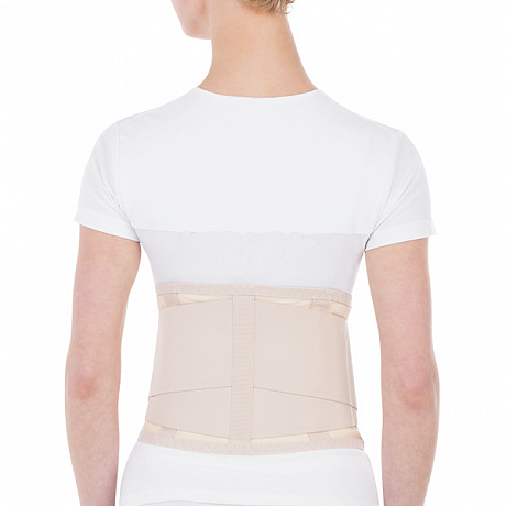 Бандаж из воздухопроницаемой сетчатой ткани. Дополнительная двойная стяжка для нормализации внутрибрюшного давления.